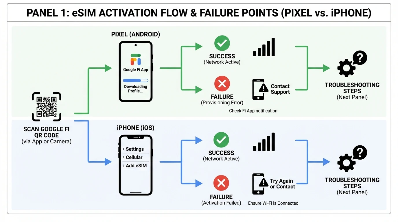 Google Fi eSIM Activation Failed: Troubleshooting QR Codes, Provisioning Errors, and Pixel vs iPhone Differences