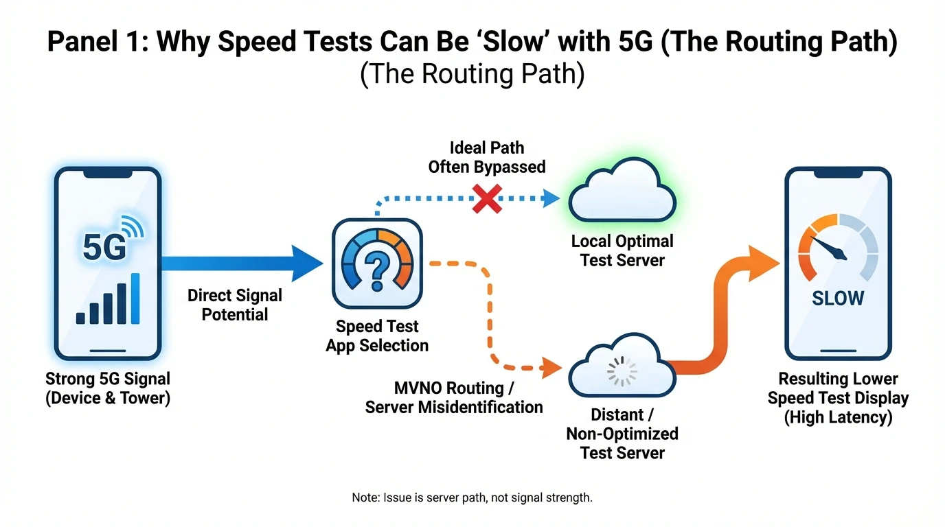 Understand why Google Fi speed tests may show 'Slow' speeds even with a 5G signal, focusing on throttling, network congestion, and testing methodologies.