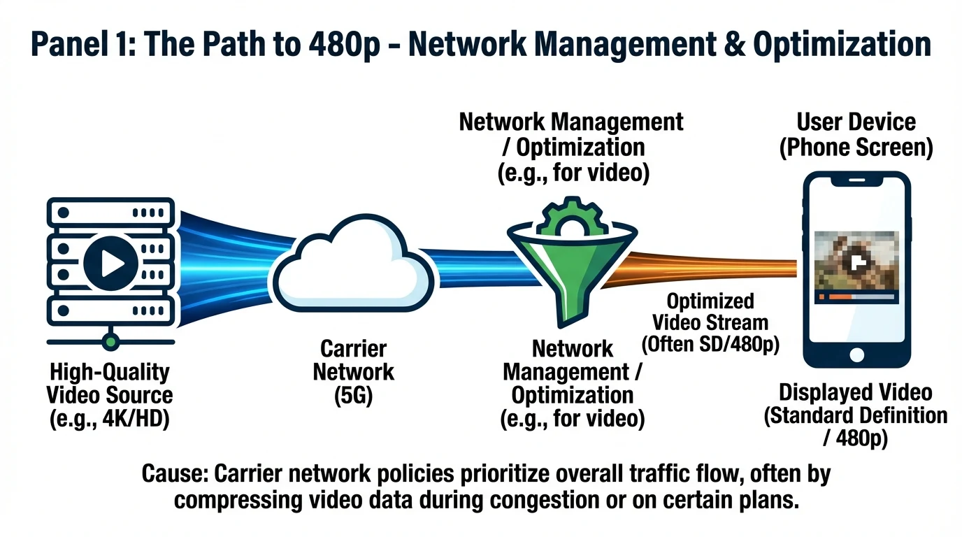 Mint Mobile's video streaming often appears as 480p due to network prioritization and video optimization policies. Users can use VPNs to bypass these limitations but cannot change carrier-imposed throttling.